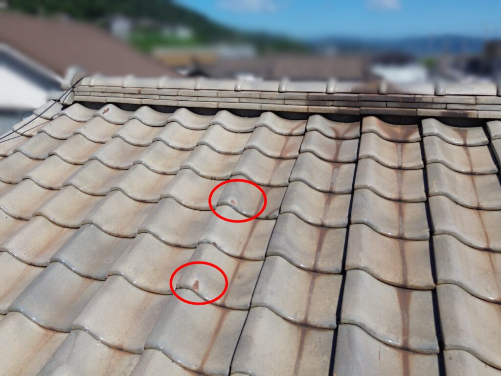 瓦が欠けていたり、汚れています。
